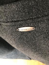 Bel giaccone della marca austriaca di prestigio Giesswein, grigio chiné, perfetto stato, lana pura di qualità, calore di un cappotto