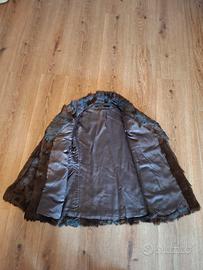 Giaccone donna in pelliccia di lapin colore marrone taglia S/M ,lunghezza 70 cm,spalle 58 cm