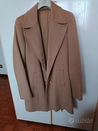 giaccone classico donna lana alpaca colore cammello collo inglese 3 bottoni avanti tasche filettate cintura stessa stoffa interamente foderata lunghezza cm 83 manica cm 63 spalle cm 39 giro vita cm 96 taglio e confezione sartoriale le misure corrispondono a taglia 46/48