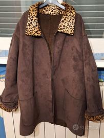 Bel giaccone da donna color marrone cioccolato, con colletto e bordo maniche in tessuto maculato, misura M, chiusura con cerniera frontale, 2 tasche grandi, in perfetto stato!!