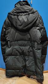 Giaccone donna nero, taglia M (come visibile dalla foto etichetta interna) con pelliccia al collo rimovibile. Perfetto come nuovo, nessuna lacerazione, scucitura, tutte le cerniere e tutte i bottoni di chiusura funzionano perfettamente, fodera perfetta ed integra.