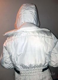 Giaccone Geox taglia 42, imbottito ed impermeabile con cappuccio. Rifinito nei minimi particolari, condizioni pari al nuovo. Bianco ghiaccio. Spese di spedizione a carico del destinatario.