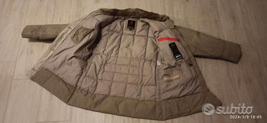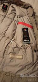 Giaccone giacca giubbotto piumino donna ragazza di marca Peuterey taglia 42 (e più) bel tono di beige (le foto non rendono), il collo anche a pelliccia è staccabile sul collo con numerosi bei bottoni. Numerose tasche sia esterne che interne anche porta cellulare. Possibilità di consegna a Trento nord, Pergine e Cles, previo accordi.