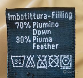 Composizione imbottitura 70% piumino, 30% piuma. Decisamente caldo.