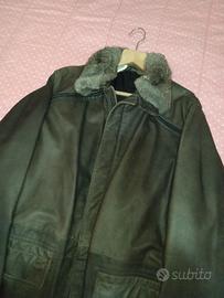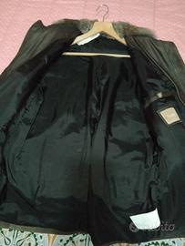 Giaccone / Giubbotto Uomo in Ecopelle con doppio collo in pelliccia che può essere anche tolto tramite cerniere per smontarlo e rimontabile, Taglia 52