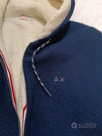 giaccone AX SUN68 LANA FUORI IMBOTTITURA DENTRO CON CAPPUCCIO IMBOTTITO colore Blue esterno, panna dentro.caldo comodo tenuto bene. pagato nuovo 298.00€