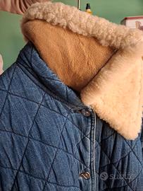 giaccone imbottito donna Enrico Coveri Jeans vintage anni ’80/’90, collo in montone removibile , maniche removibili, linea Himalayan, Taglia 42.