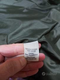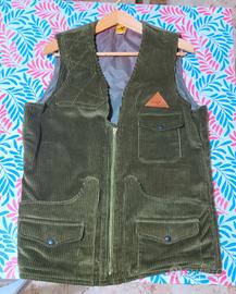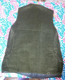 Giaccone imbottito verde con cappuccio inserti nel colla della giacca chiuso da cerniera a scomparsa. Maniche staccabili con cerniere. Taglia 54 Gilet a coste di velluto taglia 52. Articoli vintage abbigliamento da caccia. Giaccone prezzo € 20 Gilet prezzo € 15