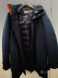 Parka da uomo molto caldo in vero piumino d'oca, originale, usato pochissimo, vendo per cambio taglia. Veste una 54. Interno in piumino con finiture militari esterno in nylon tecnico. È dotato di cappuccio, capienti tasche interne ed esterne.