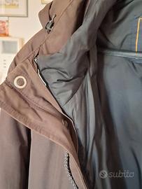 Giaccone color fango ed imbottitura nera.