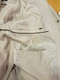 Con zip e bottoni automatici, diverse tasche sia esterne che interne, foderato.