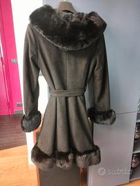 Bellissimo giaccone nero con cappuccio , e pelliccia sintetica all'interno , veramente elegante e chic su vestiti , glamour e divertente anche su pantaloni e jeans , molto femminile, come NUOVO messo un pomeriggio veste 42/44