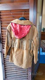giacca in pelle scamosciata con frange in buone condizioni.
