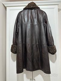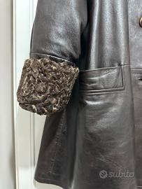 Giaccone in Pelle Testa di Moro Con collo e polsi in Pelliccia di Astracan Taglia 46, vestibilita oversize, veste 50/52
