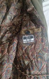 Giaccone invernale in vera pelle scamosciata da uomo, colore verde muschio, tre quarti, taglia 52. Usata in pochissime occasioni, come nuova