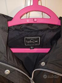 Giaccone donna colore nero da donna marca Kipling, si può regolare l'arricciatura sui fianchi Ha il cappuccio e si chiude con zip o anche bottoni
