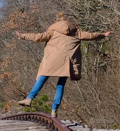 Giacca lunghezza midi reversibile in nylon idrorepellente rosa e beige scuro Ottime condizioni