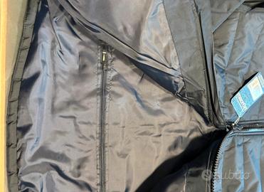 Nuovo ancora con cartellino, Giaccone macron blu con inserto bianco, lampo con doppio cursore, tasca interna e cappuccio staccabile