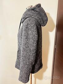 Giaccone manila grace con cappuccio e zip dorata. Tg 42 vestibilita comoda. Esterno in lana effetto lavato interno pelliccia sintetica disegno ghepardo. Molto caldo.