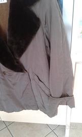 Marella giaccone doppio petto in tessuto luxury antigoccia colore bronzo. Tasche laterali e collo a scialle in ecopelliccia marrone, imbottitura in flanella marrone. Taglia 42 italiana