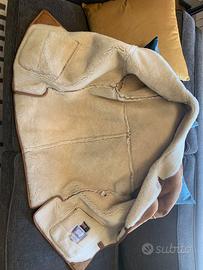 Giaccone in montone Nursey's per uomo, taglia M/L, monetto, tre bottoni, colore beige, usato ma in ottimo stato