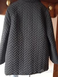 Giaccone nero, trapuntato a spighe, chiusura con bottoni, taglia L