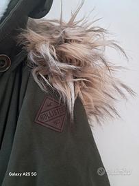 parka Hollister ragazza - Taglia xs - Colore olive green, usata poco e in ottime condizioni, foderato con morbidissima pelliccia ecologica, cappuccio con bordo in pelliccia ecologica rimovibile. Chiusura con zip e bottoni