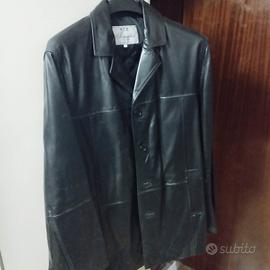 giaccone pelle nero, made in Italy, mai usato, taglia XXL