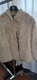 Morbido giaccone in vera pelliccia, manica a "pipistrello" colore cappuccino chiaro ,come in foto. Pelo lungo ma non ricordo se la pelle è agnello o lapen o altro tipo di pelliccia.