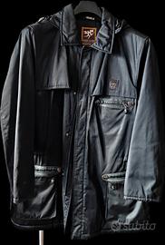 Giaccone impermeabile imbottito con cappuccio Piero Guidi linea bold tg XXL nero inserti in pelle € 130