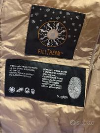 Piumino Violanti tg 44 dettagli ricercati cintura in cuoio, birdature sul cappuccio ed in basso al piumino in lana , cappuccio e contorno polzino staccabili.