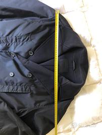 Giaccone Prada uomo, nero, impercettibili segni di usura. Taglia L. Nylon/Rayon. Due tasche interne con bottone e due tasche esterne con chiusura a clips. Posso firnire ulteriori foto in privato.