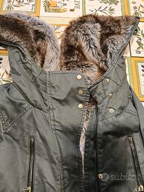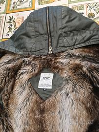 GIACCONE ragazza Only colore verde militare con fodera di pelliccia con cappuccio con zip con fodera di pelliccia taglia m modello tipo parka piccola macchia dietro... da lavare molto caldo posso spedire prezzo non trattabile