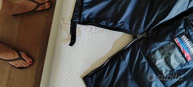 color blu, marca Blauer, taglia M ,veste 46, cerniera doppia apertura + bottoni, spacchi laterali chiusi con cerniera.