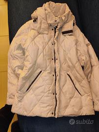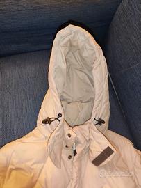 Giaccone invernale Sergio Tacchini (Taglia S - colore bianco panna) con cappuccio removibile in vera piuma d'oca; taglio classico, adatto anche per completo da uomo (abito intero giacca e pantalone; praticamente nuovo nessun difetto.