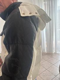 Giaccone sportivo invernale colore panna con inserti in pelle nera