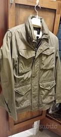 Giaccone Verde Militare con piumino interno staccabile double face da utilizzare separatamente. Giaccone usato ma in buone condizioni. Bordi maniche un po' consumati (vedi foto) Gran bella giacca! Comoda e ricca di tasche.