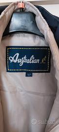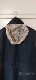 giaccone uomo blu con inserti e cuciture a vista beige con interno trapuntato rimuovibile, cappuccio a scomparsa nel collo tasche con zip.Mai indossato taglia M/L veste abbondante