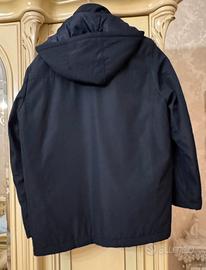 Giaccone uomo con cappuccio rimovibile taglia M, lunghezza spalla 45cm, torace 58cm e lunghezza 78cm.