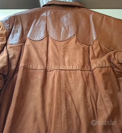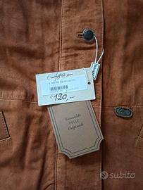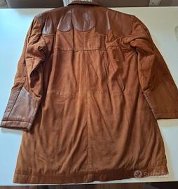 Giaccone vintage unisex in camoscio e pelle color rugine tag.M Over L nuovo con cartellino ,lunghezza 89 cm,spalle cm 56