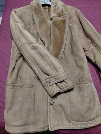 Giaccone uomo montone color cammello caldissimo ottima manifattura collo in pelliccia come foto