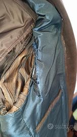 Giaccone marrone uomo Paoloni made in italy. Lunghezza media. Taglia 48 . Ottima vestibilità . Interamente foderato in blu con fodera maniche a contrasto. Tasche laterali e tasche basse. Chiusura con bottoni . Sotto piumino smanicato sempre marroni con taschina interna che si chiude con zip e tiene caldo al Giaccone oppure può essere portato da solo . In pratica sono tre capi in uno . Quello più invernale con il piumino smanicato sotto,quello meno caldo senza ail piumino e solo il piumino per la primavera. Ci sono due bottoni di scorta originali. Piccoli segni di usura solo