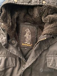 Giaccone Refrigue. Colore nero, taglia L, sfoderabile. In ottime condizioni, solo picvola macchiolina visibile nell’ultima foto, ma impercettibile!