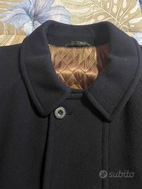 Giaccone uomo Sespi disegnato da Luca Grimaldi in tessuto misto lana/cashmere blu con maniche raglan, zip e bottoni. Interno con fodera trapuntata con fascione inferiore con cerniera per renderlo facilmente romovibile x lavaggio.