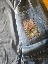 giaccone pelle scamosciata colore blue avio, allacciatura bottini originali, con 4 tasche esterne e 1 interna