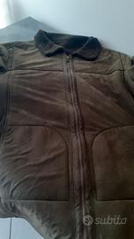 Giaccone verde vellutato con cerniera e due tasconi esterni. Imbottito con tasca interna. Astrolabio. Taglia 58. Misure: spalle 61 cm, torace 71 cm, manica 70 cm e lunghezza 85 cm