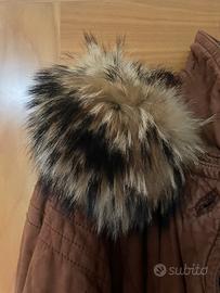 Giaccone lungo in vera pelle, anni 90 con pelliccia vera sul cappuccio . Ottime condizioni