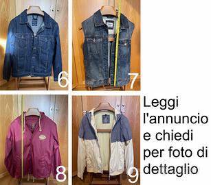Vendo diversi capi Pull&Bear, ideali per tutte le stagioni. Tutti in condizioni ottime o come nuovi, poco utilizzati. 1 - Giaccone tipo montgomery taglia XL in tessuto impermeabile con rivestimento interno, 2 tasche frontali e una interna. Cappuccio rimovibile, chiusura con zip e alamari. Condizioni: poco usato come nuovo. Peso 1050 g. Prezzo 50€ 2 - Venduto 3 - Giubbotto imbottito impermeabile taglia L con cappuccio, 2 tasche frontali e una interna. Chiusura con zip. Condizioni: poco usato come nuovo. Peso 500 g. Prezzo 35€ 4 - Giubbotto smanicato tipo bomber taglia L in tessuto impermeabile imbottito con cappuccio rimovibile, 2 tasche frontali e una interna. Chiusura con zip. Condizioni: poco usato come nuovo. Peso 785 g. Prezzo 35€ 5 - Giubbotto in tessuto taglia L con 2 tasche frontali e una interna. Chiusura con zip. Condizioni: poco usato come nuovo. Peso 500 g. Prezzo 35€ 6 - Giubbotto jeans taglia L con 4 tasche frontali. Chiusura con bottoni. Condizioni: poco usato come nuovo. Peso 770 g. Prezzo 30€ 7 - Giubbotto jeans smanicato taglia M con 4 tasche frontali. Chiusura con bottoni. Condizioni: nuovo. Peso 655 g. Prezzo 30€ 8 - Giubbotto impermeabile antipioggia taglia M leggero con cappuccio, 2 tasche frontali e una interna. Chiusura con bottoni a clip. Condizioni: poco usato come nuovo. Peso 300 g. Prezzo 25€ 9 - Giubbotto taglia "L" in tessuto impermeabile leggero rivestito con cappuccio, con 2 tasche frontali e una tasca interna. Chiusura con zip. Condizioni: poco usato. Peso: 475 grammi Prezzo: 20€ Sconti disponibili per acquisto multiplo o blocco completo. Possibilità di spedizione o consegna a mano. Contattami per ulteriori informazioni o foto dettagliate.