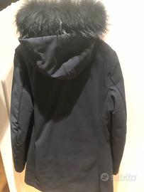 Piumino 3/4 marchio RRD, tessuto tecnico impermeabile con collo in volpe.