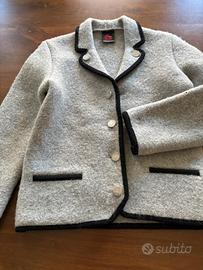 Giacchina in lana cotta marchio Giesswein Tirol, veste 6/8 anni , pulita, la lana presenta dei forellini poco visibili. Ci sono tutti i bottoni in metallo a moneta .